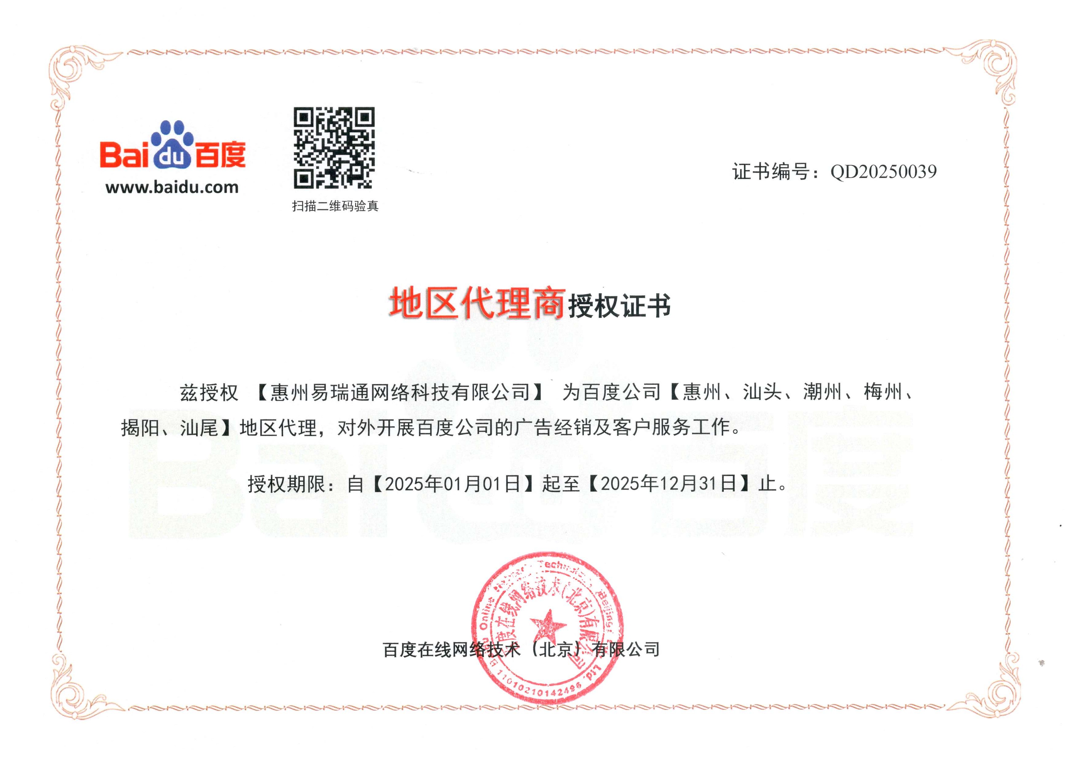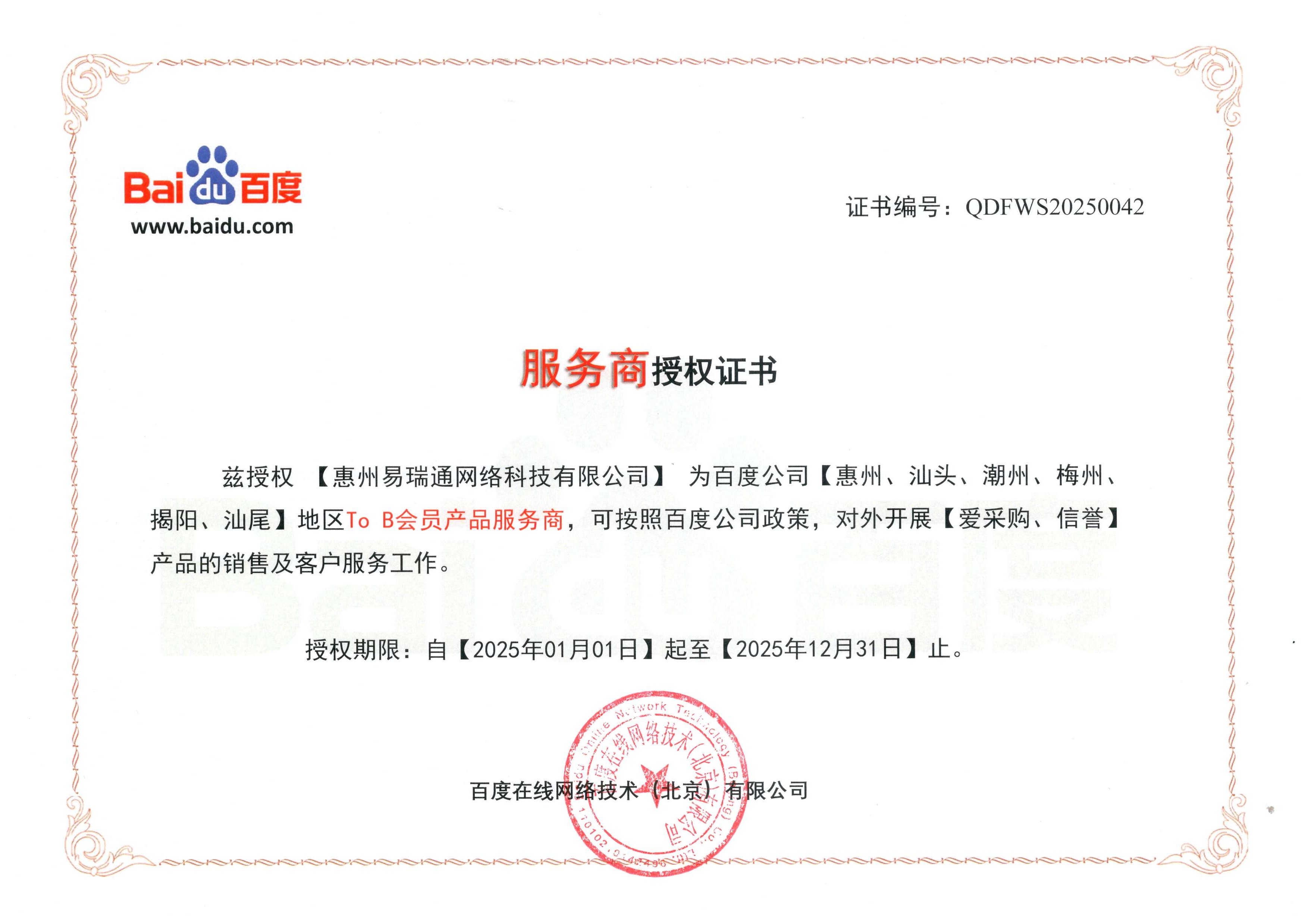 易瑞通作為百度粵東6大城市獨家代理,憑借百度強大的互聯網資源、AI技術與大數據應用能力,為全行業的產品推廣與品牌形象打造需求進行深度匹配,變革企業傳統的營銷思路與渠道拓展,加速企業在供應鏈上下游的銜接,通過搜索大數據指導企業經營生產,并借助移動互聯網為契機,搭建了智能營銷生態服務體系,以品牌營銷、效果營銷、商業模式創新指導等方式與用戶共同成長。