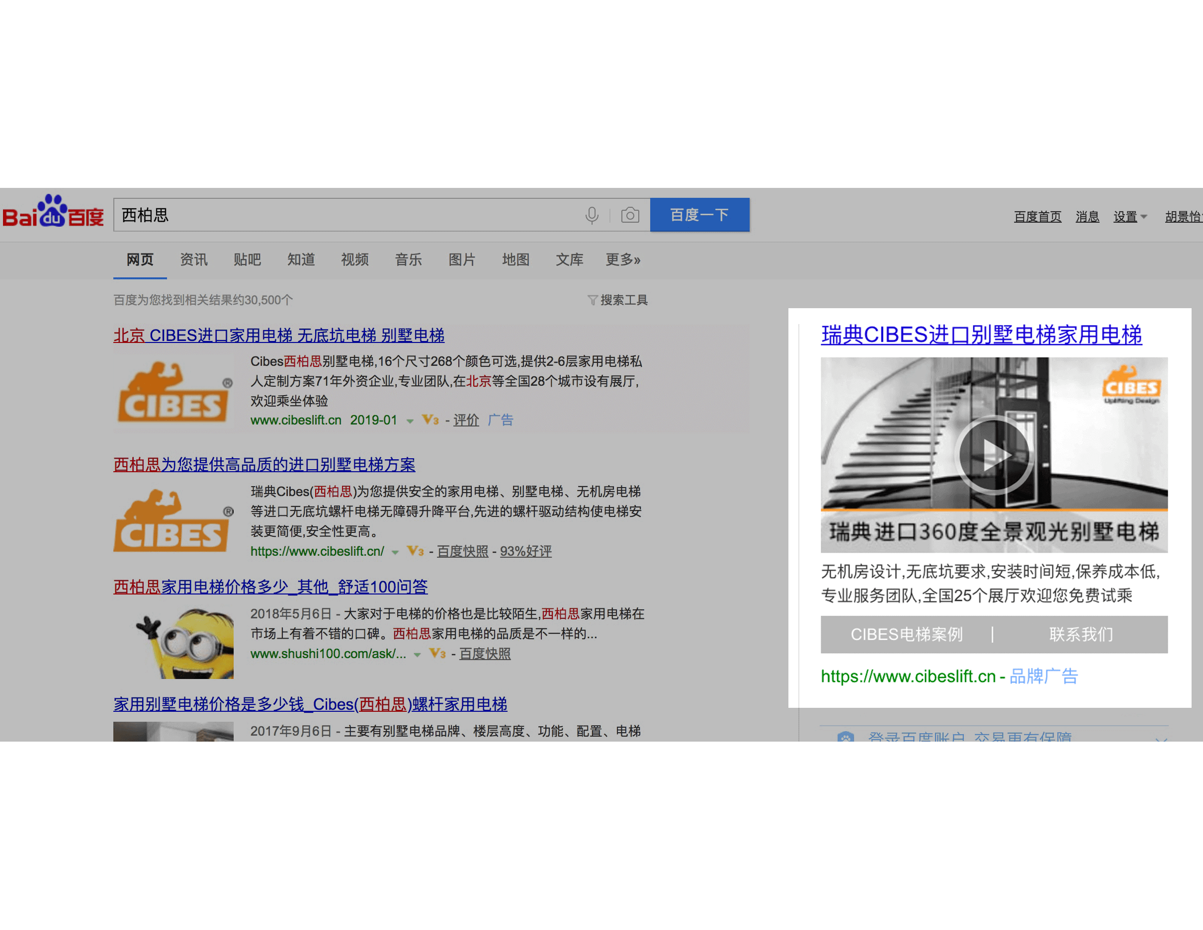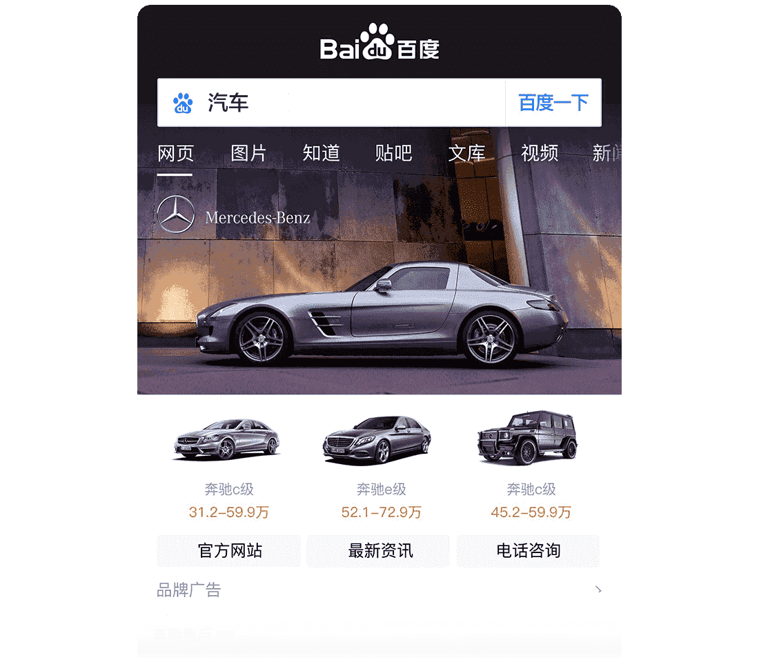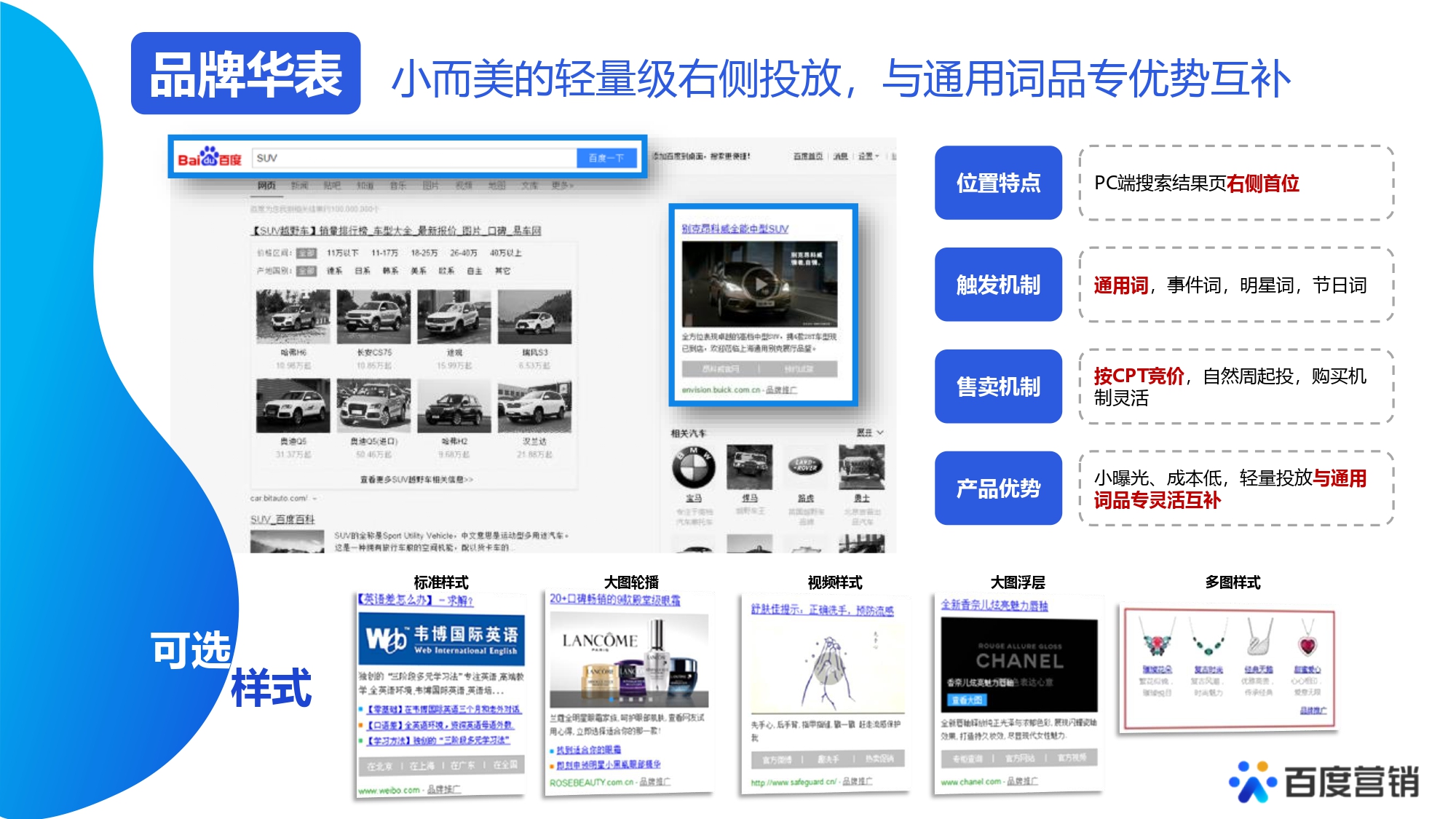 品牌推廣基于百度搜索引擎,通過品牌詞觸發(fā),提供全場(chǎng)景一站式品牌營(yíng)銷服務(wù)陣地,以創(chuàng)新的樣式和視覺交互吸引品牌認(rèn)知階段的搜索用戶,加深用戶對(duì)客戶品牌的第一印象,進(jìn)而引導(dǎo)用戶形成對(duì)品牌的好感和忠誠(chéng)度。