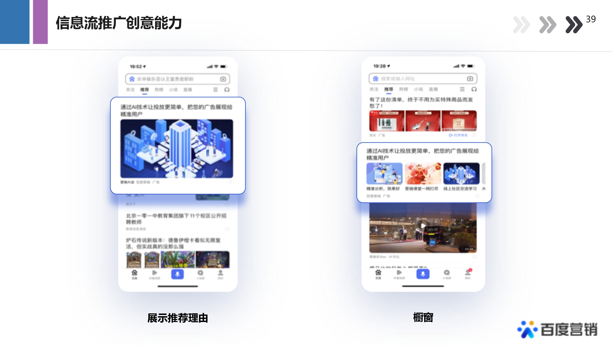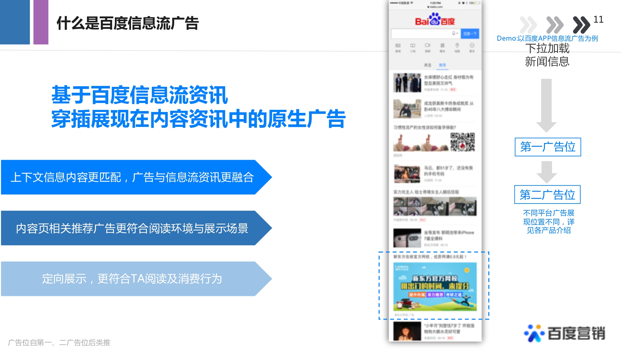 信息信息流廣告是在百度APP、貼吧等百度資訊流中穿插的原生廣告,通過“搜+推”雙引擎,將您的推廣信息自然融入在各類資訊、信息中,易傳播、易操作。